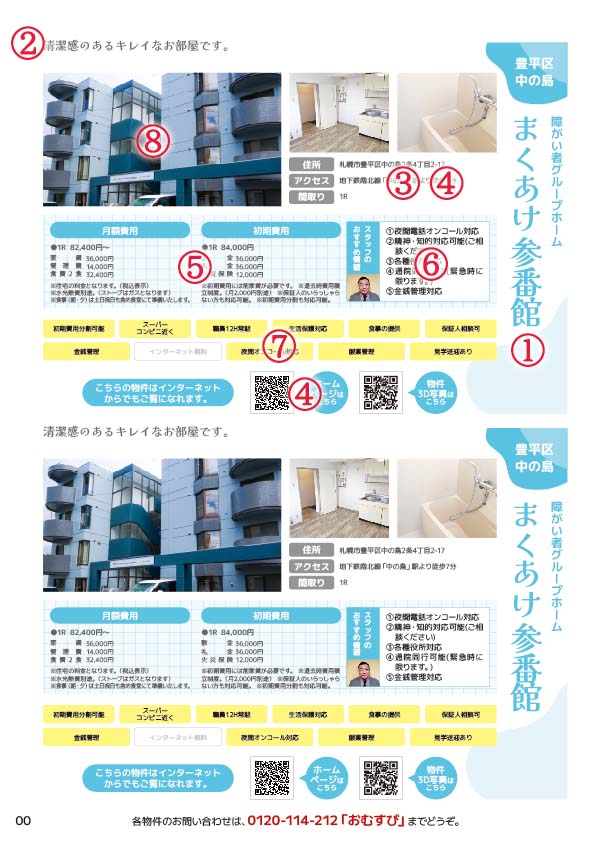 必須画像情報 外観、内観の写真3枚 スタッフ写真1枚 間取り図データ